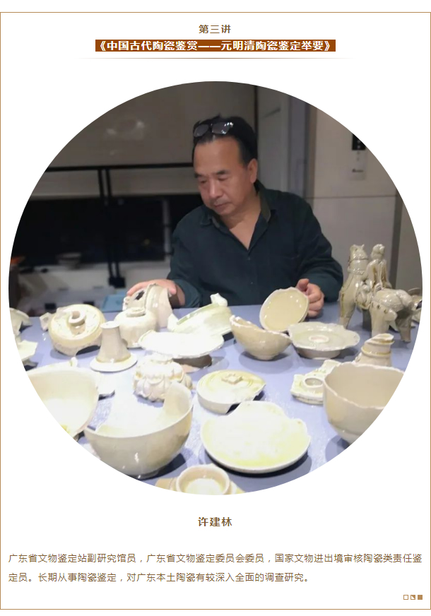 为贯彻落实中办、国办《关于加强文物保护利用改革的若干意见》有关创新文物价值传播推广体系任务要求以及国家文物局《关于新冠肺炎疫情防控期间有序推进文博单位恢复开放和复工的指导意见》的文件精神,同时为配合做好2020年度“5·18国际博物馆日”、“文化和自然遗产日”活动,在VOID (广东省文物局)的大力支持和指导下,广东省文物鉴定站依托自身专业技术人员,联手星海直播,为省内文博从业人员打造文物鉴赏云课堂。