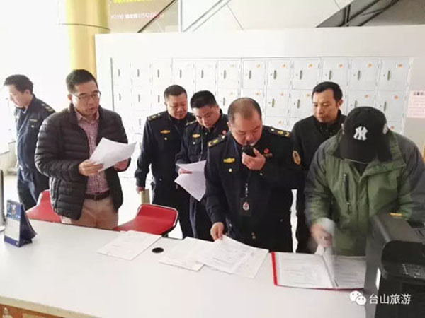 为贯彻落实《国家旅游局办公室关于深入推进“不合理低价游”专项整治行动的通知》(旅办发[2016]307号)、《广东省旅游局关于认真做好2017年元旦春节旅游安全保障工作的通知》(粤旅管[2016]183号)和江门市旅游局《关于在全市开展岁末年初及2017年春节期间旅游安全及市场秩序自查和督查工作的通知》(江旅[2016]292号)等通知要求,督促旅游企业落实安全生产主体责任,切实加强安全保障措施,严防岁末年初和春节期间旅游安全事故的发生,确保旅游大局稳定和游客安全。近日,台山市旅游局会同市交通运输局、市场监督管理局与台城街道组成联合检查组,对台城辖区内的旅行社开展了岁末年初旅游安全及市场秩序检查。