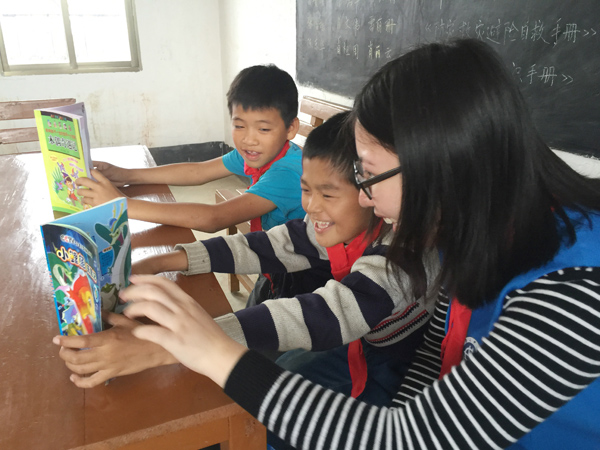 尽管天公不作美,准备的室外游戏无法进行,但志愿者们站上讲台当起了老师,给孩子们讲故事、教功课、玩游戏,气氛非常热烈。同学们也勇敢地站到讲台上分享自己喜欢的故事。清脆的读书声伴着窗外淅淅沥沥的雨声,显得分外动听。