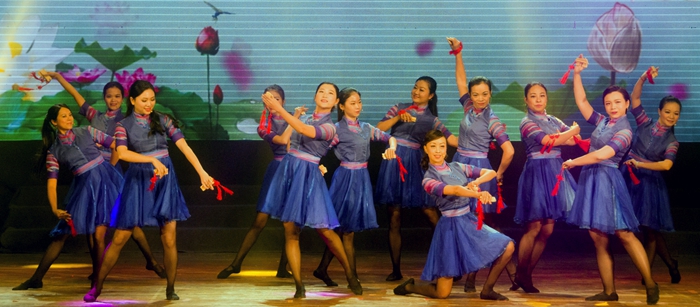 文艺汇演在歌舞《飞天雄风》中拉开帷幕。晚会节目主题鲜明,突出原创性、地域性,表演形式活泼多样:既有男女声独唱、男声小组唱、男女声合唱、舞蹈,又有小品、快板、粤剧折子戏。