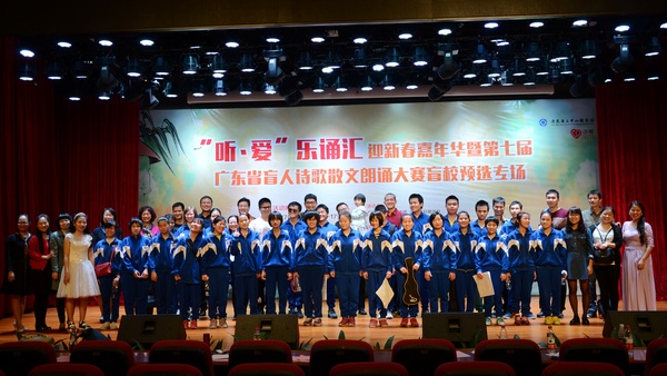在第七届盲人诗歌散文朗诵大赛盲校预选专场活动中,共有12位来自广州市启明学校的盲生带来了10个朗诵作品。这些作品由盲生们自行编排,尽管略显生涩稚气,但也有不少独具匠心的佳作。其中,两位女同学朗诵的《再别康桥》将诗句融入歌手蔡琴醇厚的歌声中,完美的和声仿佛瞬间幻化出一幅《康桥落日余晖图》,撩拨起心底一抹温柔的情愫,让评委们一致给出了9.5以上的高分。12位选手深情自信的集体朗诵《相信未来》,为本次预选赛画上了一个完满的句号。