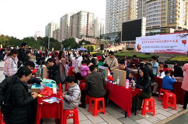 2017年2月11日,惠州市首届亲子绘本泥塑手工大赛在惠州市滨江公园举行。本次大赛由惠州市委宣传部、惠州市文化广电新闻出版局主办,惠州市文化馆、惠城区妇女联合会承办,是“中国梦·惠州福”欢乐新春--2017年惠州市元旦春节元宵期间文化惠民系列活动之一。