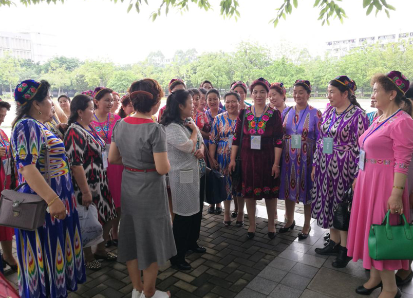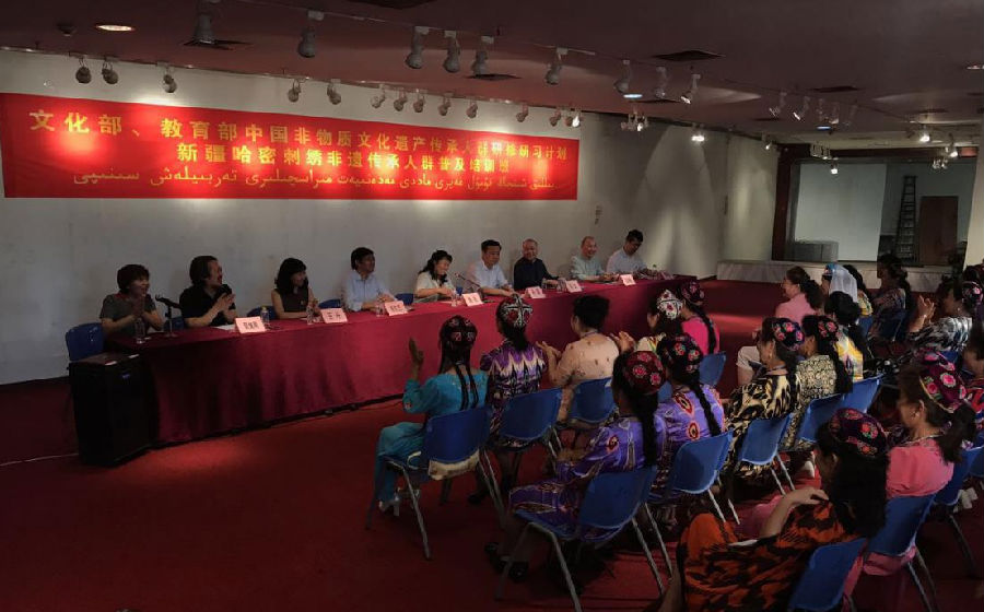 5月8日,“中国非物质文化遗产传承人群研修研习培训计划”广州大学2017第一期新疆哈密刺绣普及培训班在广州大学大学城校区正式开班。省文化厅副厅长陈杭,广州大学党委副书记张强,美术与设计学院院长杨先艺、书记吴宗敏,项目负责人裴继刚教授等有关领导及来自新疆哈密地区共50名“绣娘”传承人,参加了开班仪式。