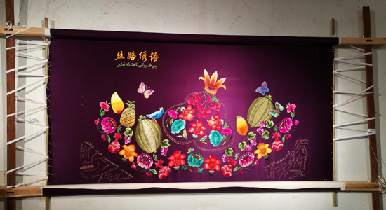 本期培训班已经是广州大学组织的第三期跨省异地培训,本次学员年龄普遍较轻,刺绣技艺基础较好,创作能力较强。通过培训,绣娘们的创作能力得到进一步提高,如今,她们不但能绣传统的靠枕和被褥,还融合广绣技艺,绣出具有岭南文化元素的作品。在培训班的结业展览上,观众可以领略到哈密刺绣的多彩演绎,绣娘创作的“丝路绣语”、荔枝、木棉刺绣画等,整整铺满了一面墙,诉说着南国风物为她们带来的真切感悟。