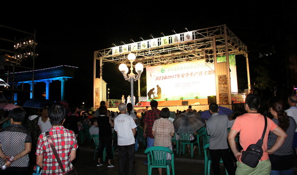 6月16日晚,由江门市文广新局主办、江门市文化馆承办的“全面落实企业安全生产主体责任--江门市2017年安全生产月主题晚会”在东湖广场文艺舞台精彩开演。作为江门市“安全生产月”的重要活动之一,此次晚会主题鲜明、内容丰富、形式多样,吸引了社会各界人士前来观看。