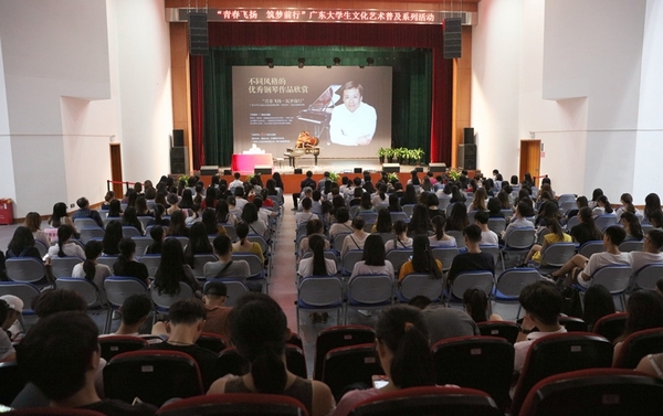 为了满足我省广大高校学生的精神文化需求,倡导健康积极向上的校园文化,广东省文化馆主办的“青春飞扬,筑梦前行”广东大学生文化艺术普及系列活动于10月9日下午拉开序幕,首场活动--“名家课堂”公益文化惠民讲座在省文化馆小剧场开讲,来自广东省各大高校、热爱音乐艺术的青年才俊300多人参加了讲座活动。
