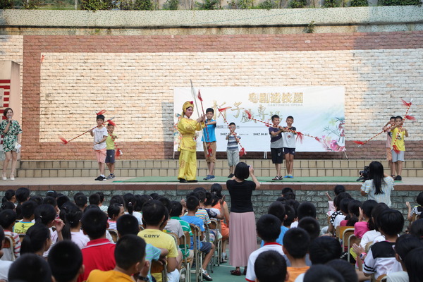 2017年10月10日至12日,广东粤剧院“粤剧进校园--折子戏专场”于佛山市里水和顺中心小学、西樵第一小学、大沥水头小学顺利开展。广东粤剧院二团的优秀演员们为近三千名师生献演《天女散花》、《七姑奶开店》、《三岔口》、《投江》、《芦花荡》等节奏鲜明、诙谐有趣的粤剧折子戏。 演出现场,司仪特意在每个折子戏之间穿插讲解粤剧的基本知识。此外,每场演出都设有演员与学生互动的环节,在演员的教导下,同学们学习“耍水袖”、“把子功”等戏曲表演动作,过足了“台瘾”。
