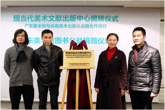 2018年1月10日下午,现当代美术文献出版中心揭牌仪式暨广东美术馆图书公益捐赠仪式在广东美术馆举行。来自省文化厅、省文联、广东美术馆、广东文艺职业学院、岭南美术出版社的嘉宾,以及各院校单位、文博单位和省县级的文化单位代表参与了本次活动。