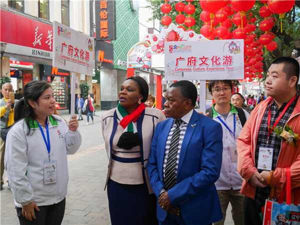 开幕式过后,主办方邀请外国驻穗领事官员、外国商会领袖、外国留学生参与“老外品广府文化游”,漫步千年古道,在传统历史与现代商贸并存的北京路上感受千年古城风韵。接下来,他们还会在南越王宫博物馆里,聆听文物“讲述”的广府传奇故事;在万木草堂感受清末明初的广州学堂文化,体验书法、剪纸艺术,欣赏旗袍走秀、试画粤剧脸谱;在一盅两件、干蒸烧卖中,品味老广州人的生活方式。“一日畅游广府文化两千年”,走广州文化之路,发现广府魅力。