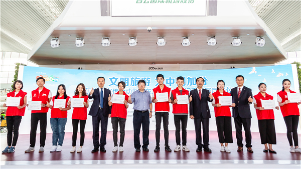 省旅游局还联合相关单位为广东文明旅游、出行有礼的旅游志愿者颁发证书,向游客派发了文明旅游资料,现场引导和宣传文明出行。