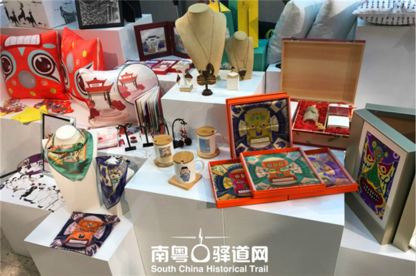 图为展厅里的南粤古驿道文创作品(中山站)。