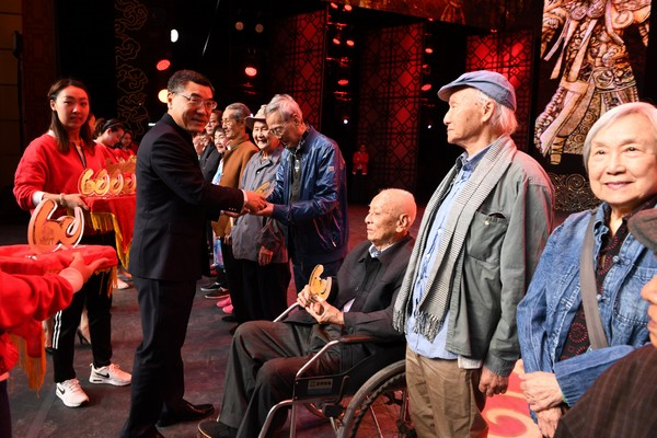 汪一洋向36位老粤剧人颁发纪念品