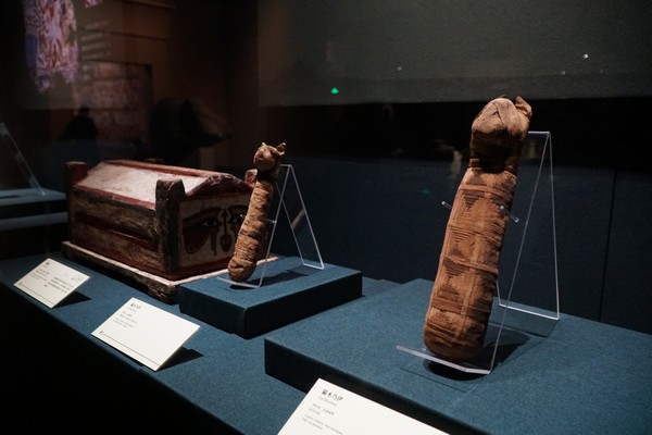对于公众而言,古埃及的金字塔、狮身人面像、木乃伊等可谓家喻户晓。此次特展,作为古埃及文明标志性的文物木乃伊、亡灵书以及小金字塔、狮身人面像等都将首次降临广州。在展览第二部分“探寻永生”中,丰富的文物与场景还原设计相结合,为观众呈现了古埃及人独特的丧葬习俗。古埃及人不畏死亡,因为他们相信还有来世,死亡不过是另一段旅程的开始,于是他们精心地打造墓室、保存好逝者的躯体、准备各种陪葬品,以期帮助逝者顺利通过层层障碍,安然前往他们心目中的永恒世界——“芦苇之野”。本次展览不仅为观众带来了彩绘丰富的人形棺、保存完好的木乃伊以及众多独具趣味的葬礼用品,还为观众呈现了一组完整而清晰的古埃及墓室壁画。