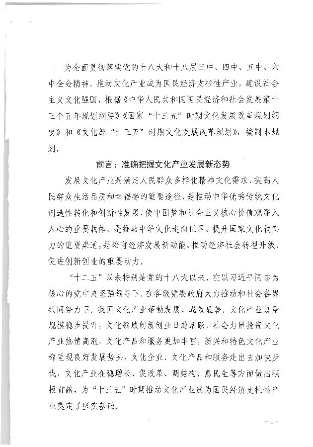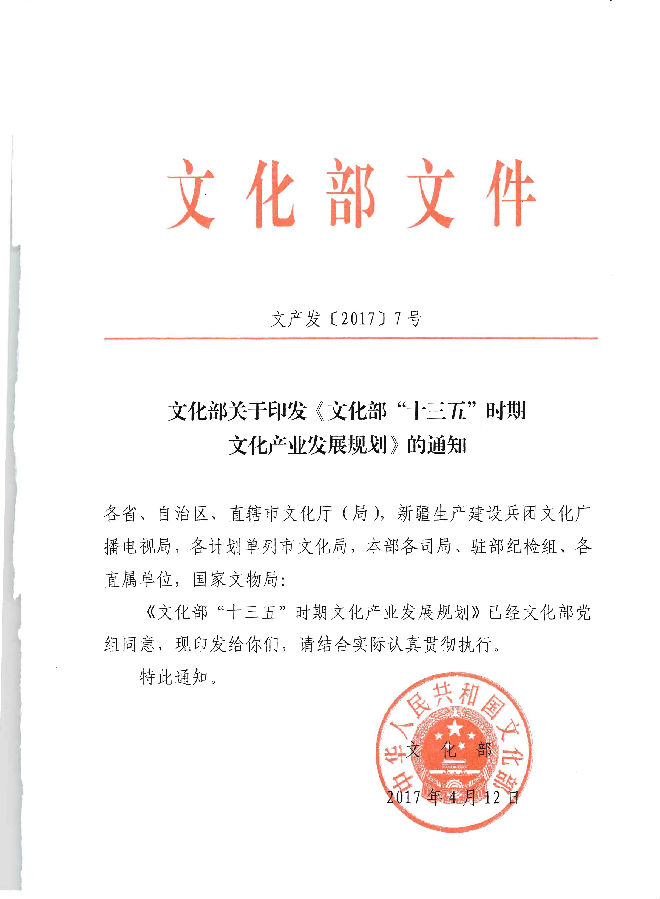 文化部关于印发《文化部“十三五”时期文化产业发展规划》的通知