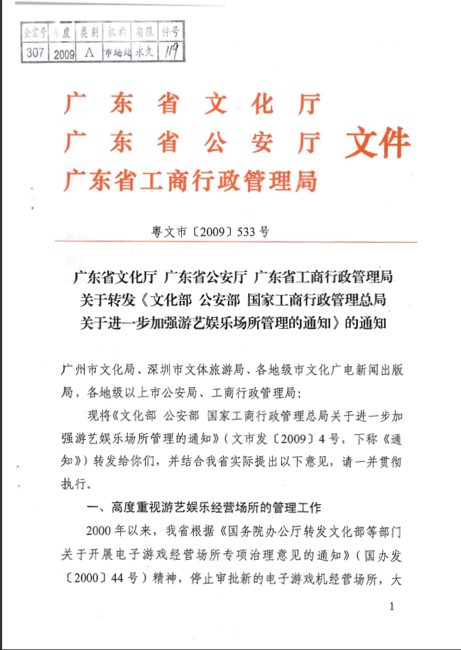 广东省文化厅 广东省公安厅 广东省工商行政管理局关于转发《文化部 公安部 国家工商行政管理总局关于进一步加强游艺娱乐场所管理的通知》的通知
