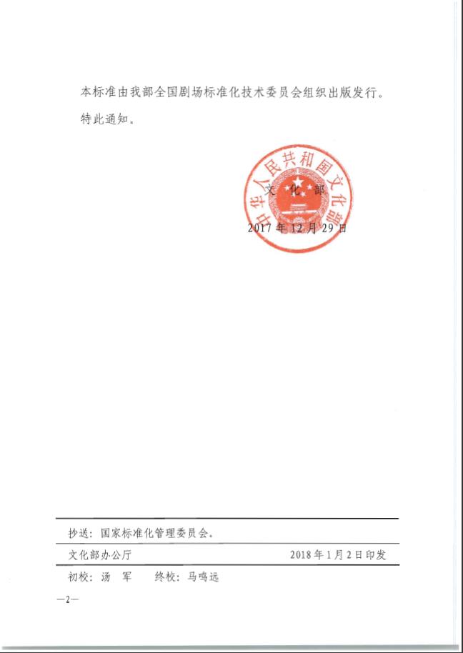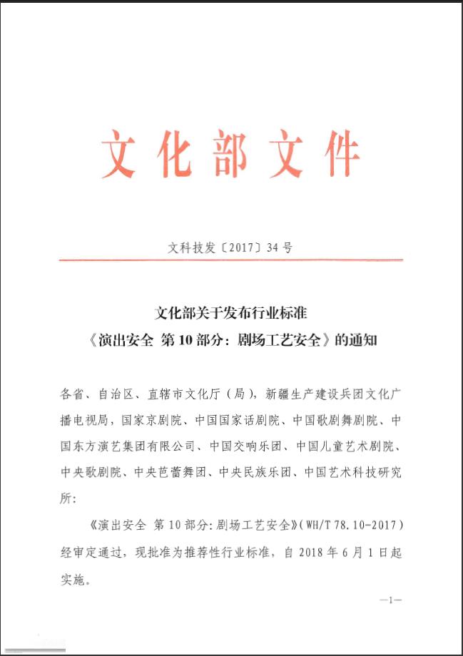 文化部关于发布行业标准《演出安全+第10部分:剧场工艺安全》的通知