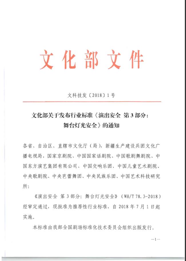 文化部关于发布行业标准《演出安全+第3部分:舞台灯光安全》的通知