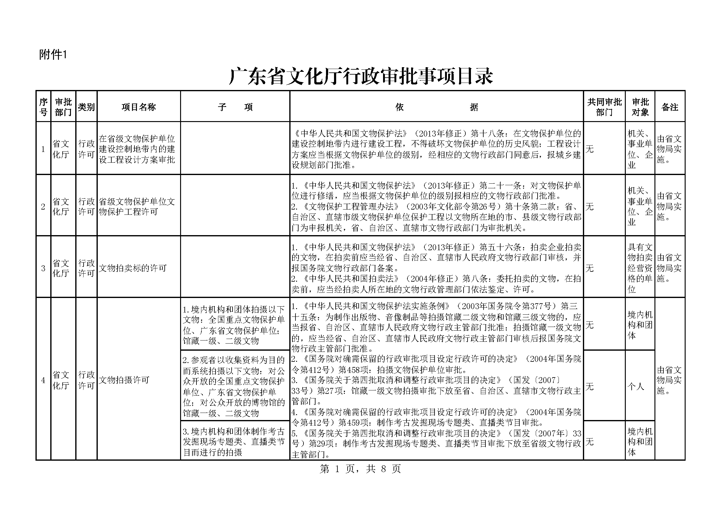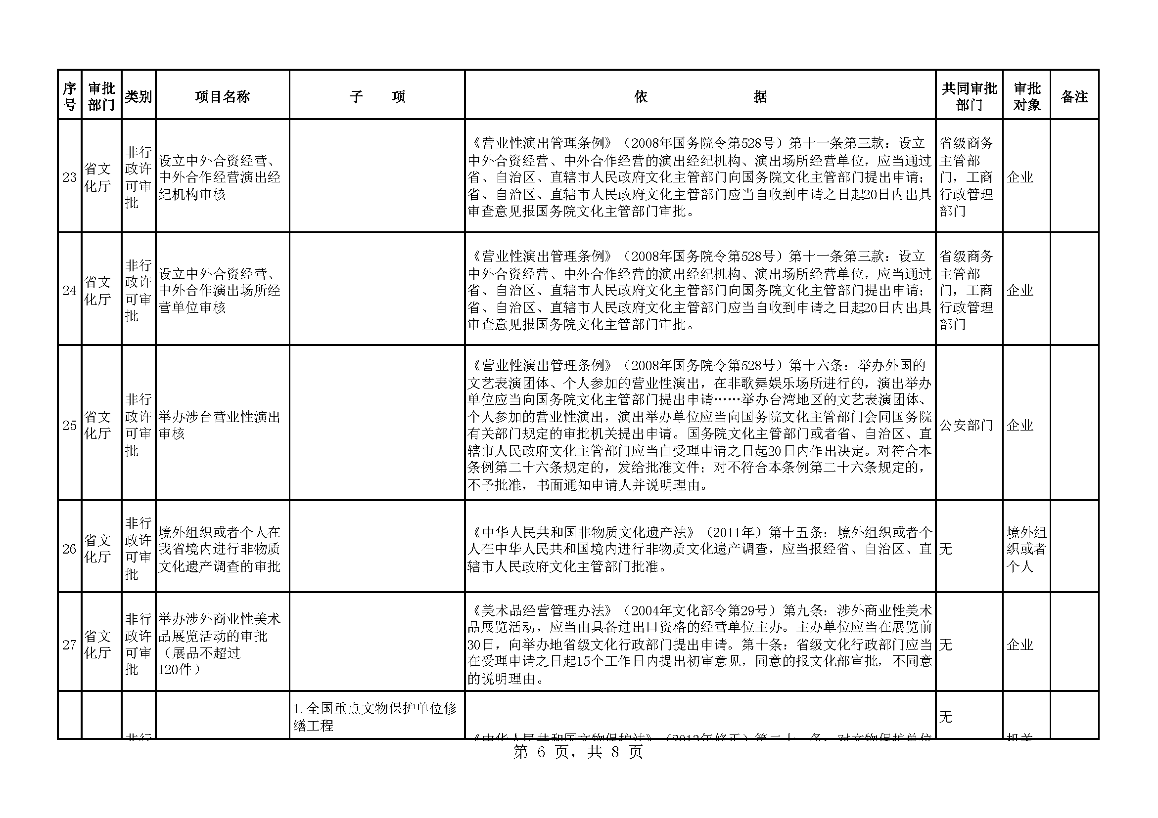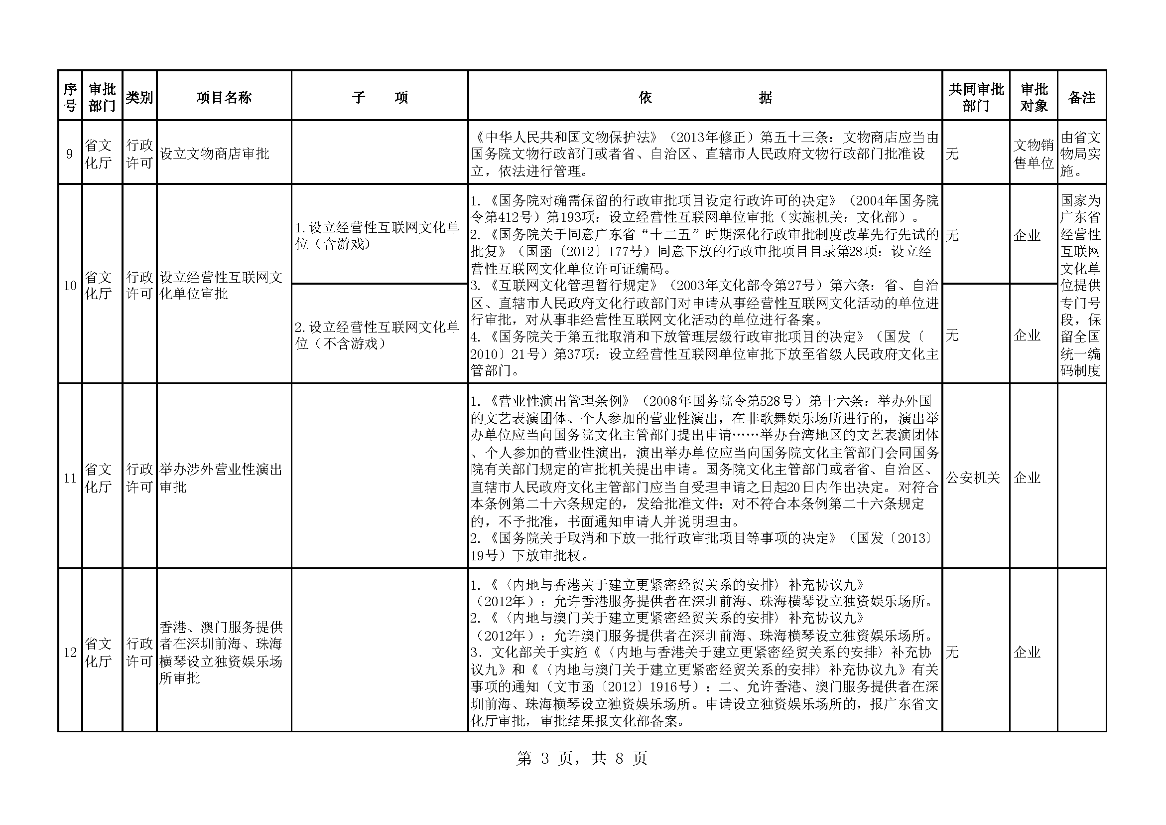 广东省文化厅行政审批事项目录下载
