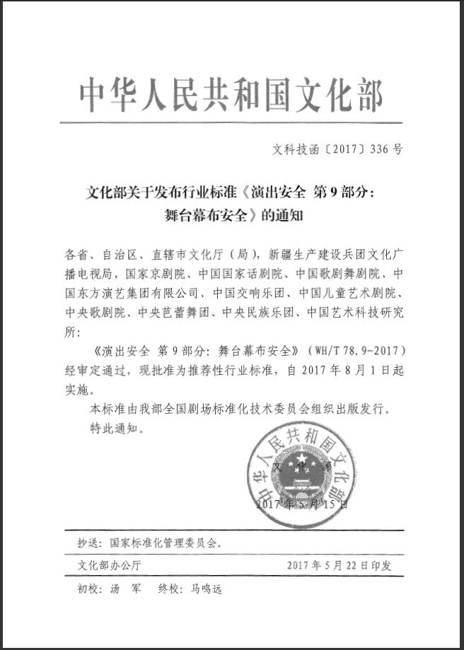文化部关于发布行业标准《演出安全 第9部分:舞台幕布安全》的通知