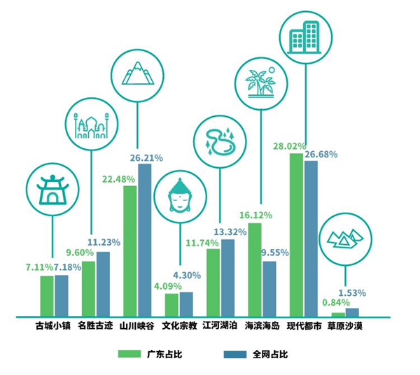 图2 景区搜索类型广东搜索占比及全网搜索占比