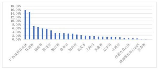 图1.5 广东乡村旅游接待省外游客分布
