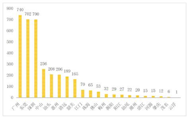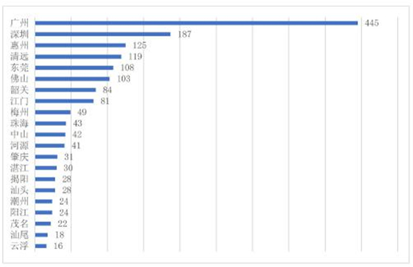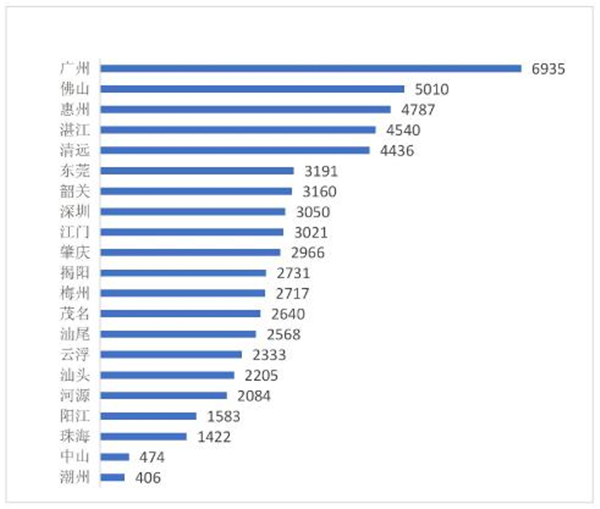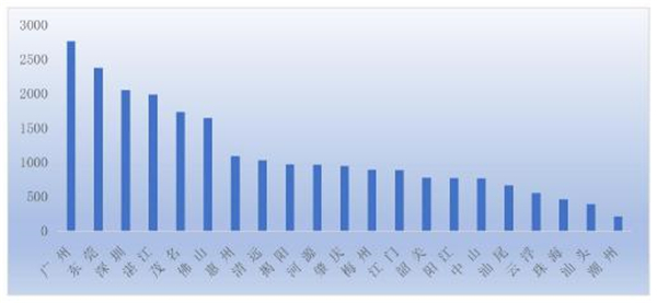 图3.8.1 广东乡村旅游餐饮类产品地市分布
