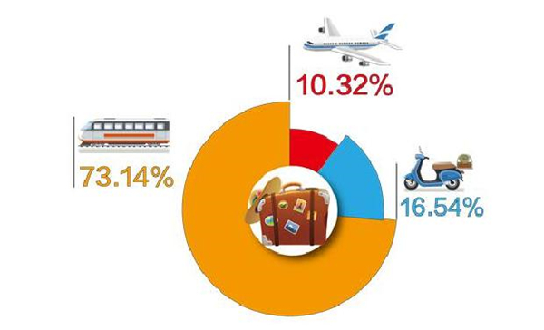 广东省乡村游出游交通方式主要以自驾和公路为主,占到了73.14%,受春节影响,跨省归乡使用火车和飞机的比例会有所上升,剔除这一因素,乡村旅游自驾占比更高。
