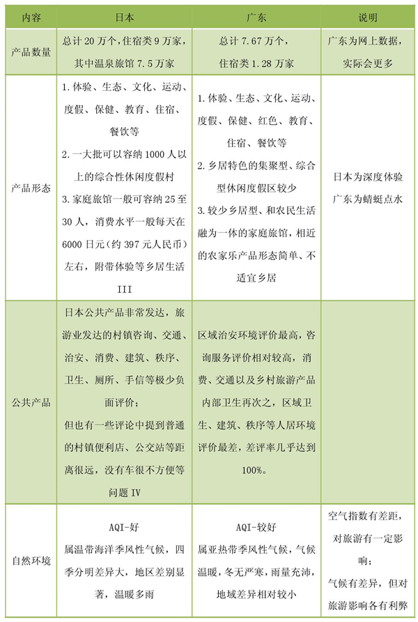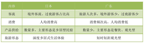 从客流客源、消费、产品供给与产品形态、旅游形态与特点等主要指标比较,广东与日本乡村旅游形态完全不同,差别很大。