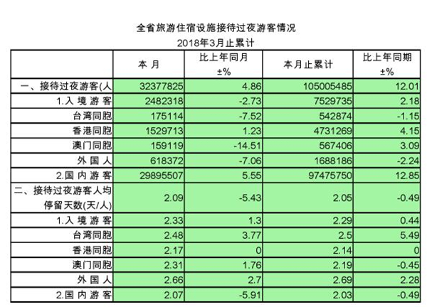 全省旅游住宿设施接待过夜游客情况(2018年3月)