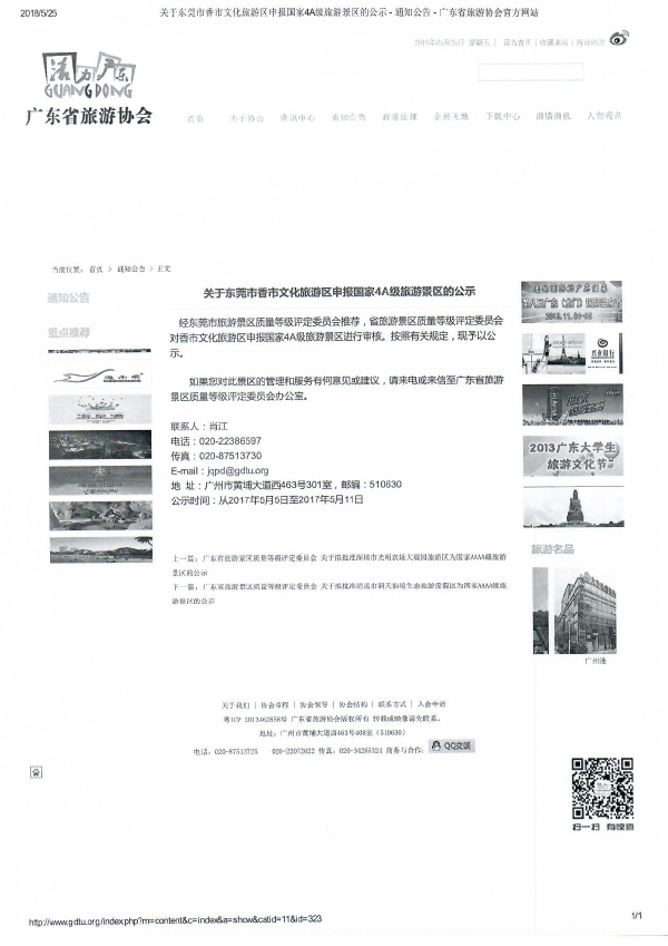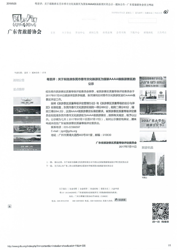 关于东莞隐贤山庄申报国家4A级旅游景区的公示