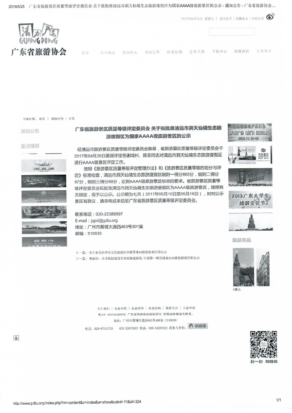 关于拟批准东莞隐贤山庄为国家AAAA级旅游景区的公示