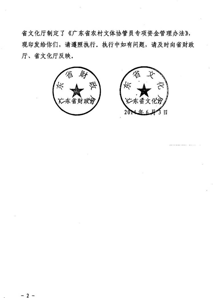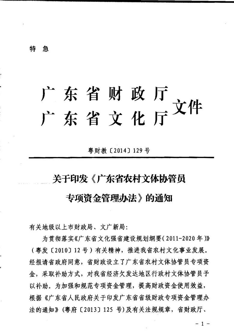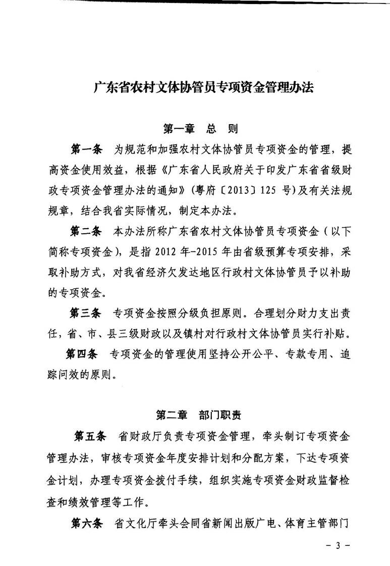 关于印发《广东省农村文体协管员专项资金管理办法》的通知