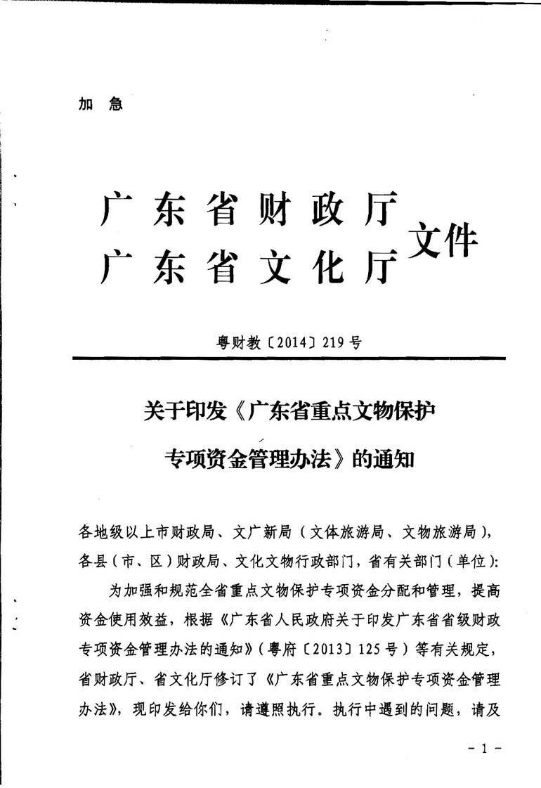 关于印发《广东省重点文物保护专项资金管理办法》的通知