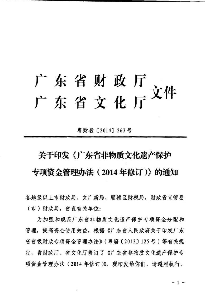 关于印发《广东省非物质文化遗产保护专项资金管理办法﹙2014年修订﹚》的通知