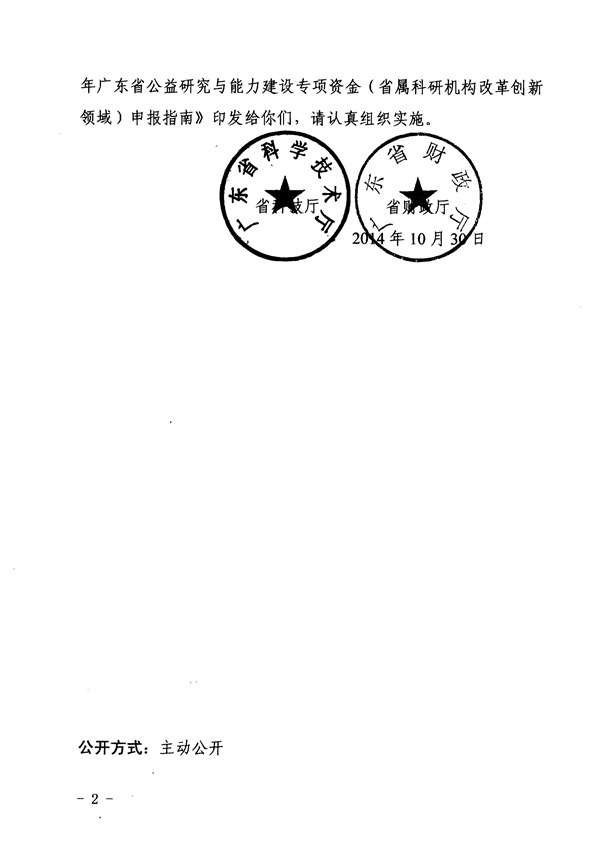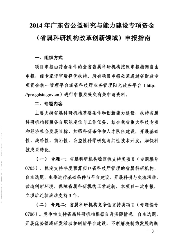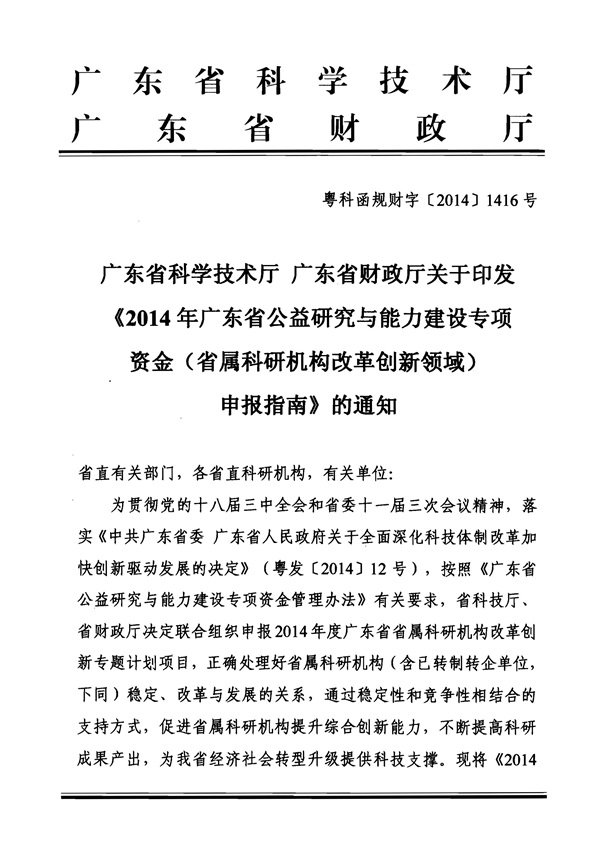 广东省科学技术厅 广东省财政厅关于印发《2014年广东省公益研究与能力建设专项资金(省属科研机构改革创新领域)申报指南》