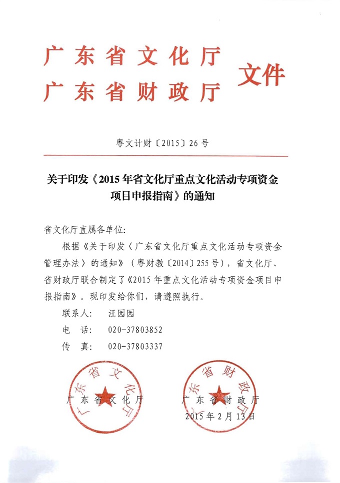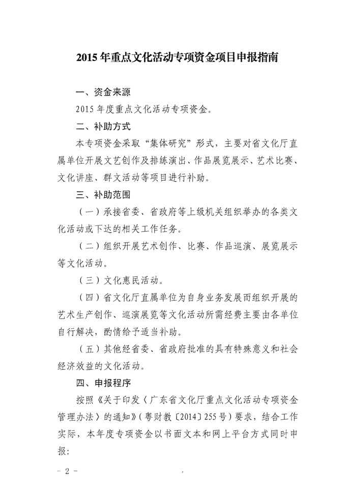 关于印发《2015年省文化厅重点文化活动专项资金项目申报指南》的通知