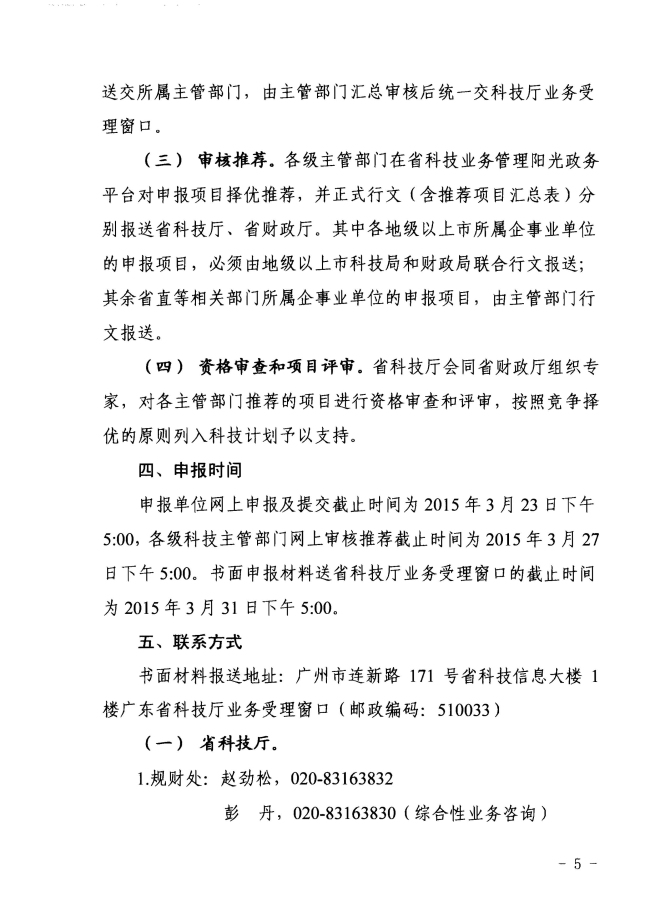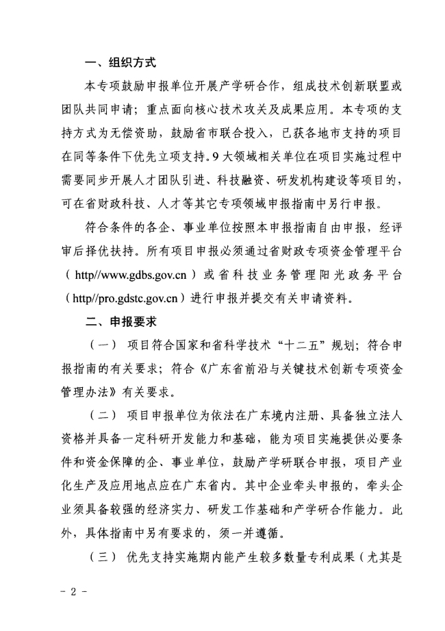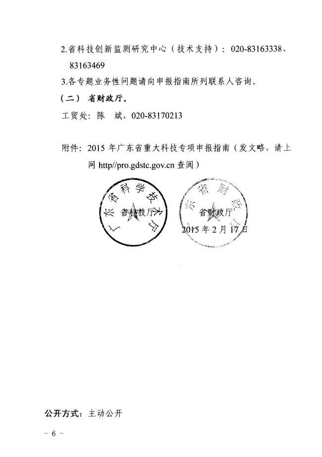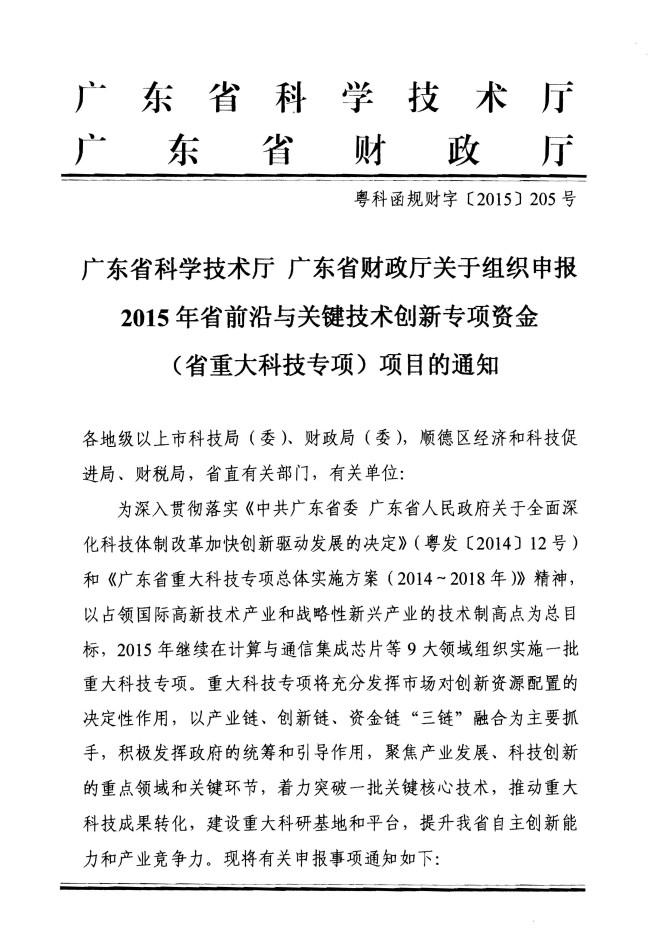 广东省科学技术厅 广东省财政厅关于组织申报2015年省前沿与关键技术创新专项资金(省重大科技专项)项目的通知