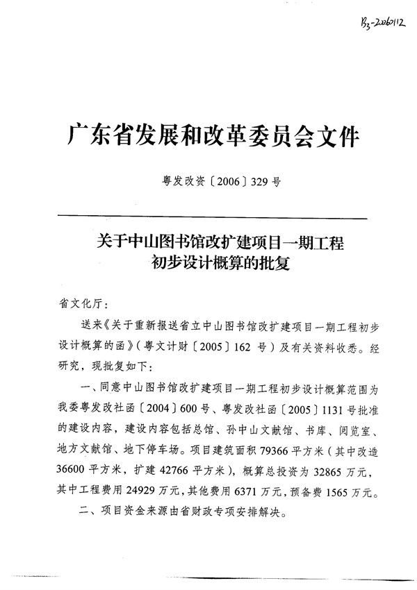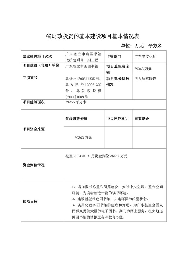广东省立中山图书馆改扩建项目一期工程基本建设项目信息公开