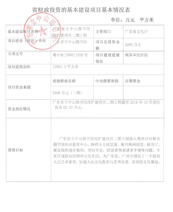 广东省立中山图书馆改扩建项目二期工程基本建设项目信息公开
