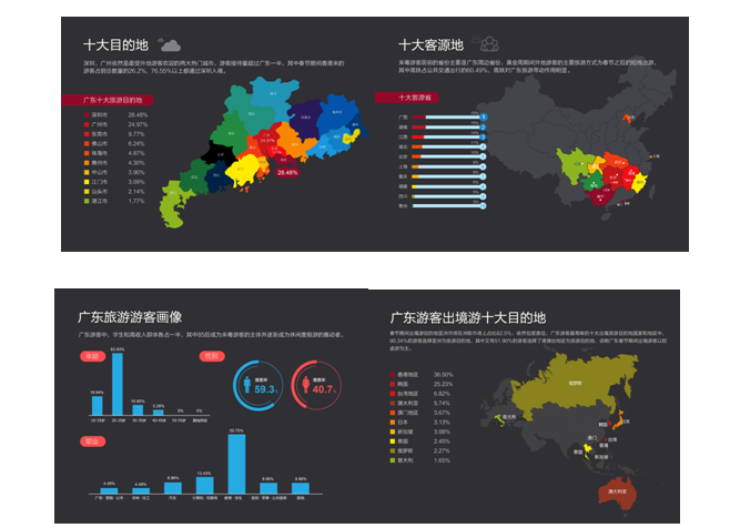 今年春节期间,我省气候温暖宜人,群众出游热情高涨,全省旅游消费市场繁荣畅旺。据统计,春节期间累计接待游客总人数4252.18万人次、同比增长10.23%,其中过夜游客1062.33万人次、增长12.5%,一日游游客3189.84万人次、增长9.5%;实现旅游总收入315.4亿元,增长14.3%。根据中国旅游研究院、携程旅行网联合共同发布的《2016春节旅游趋势报告与人气排行榜》显示,我省位列春节国内旅游度假人气排行榜第三名。深圳、广州依然是最受外地游客欢迎的两大热门城市,游客接待量超过广东一半;来粤游客居前的省份主要是广东省周边省份,黄金周期间外地游客的主要旅游方式为春节之后的短线出游,其中高铁占公共交通出行的60.49%,高铁对广东旅游带动作用明显;广东游客中,学生和高收入群体各占一半,其中85后成为来粤游客的主体并逐渐成为休闲度假游的推动者;依据广东省旅游团队管理系统数据统计,春节期间广东出境游游客以近程目的地为主,亚洲市场在洲际市场上占比82.5%,依然位居首位,春节期间广东游客最青睐的十大出境旅游目的地国家和地区依次是:香港地区、韩国、台湾地区、澳大利亚、澳门地区、日本、新加坡、泰国、俄罗斯、意大利。