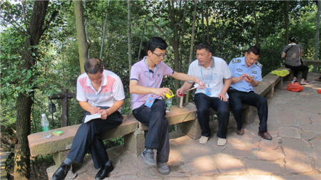 2015年国庆黄金周到来之前,为进一步推进景区安全生产,确保景区在国庆旅游黄金周期间安全、有序运行。8月26日至29日,为期三天,韶关市丹霞山景区两个部门,监察大队与投资建设部对主景区(阳元山、长老峰、巴寨)进行现场办公,地毯式安全大排查工作。检查内容包括:导游图与温馨指示牌、安全警示牌、安全防护栏、游山步道、沿江栈道、景区内外公路、存在安全隐患的干枯树木和竹子等。