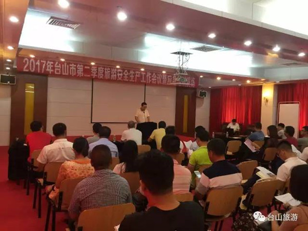 为配合旅游安全“四大专项行动”,加强江门市滨海旅游旺季安全防范工作,丰富安全生产活动月的内容,市旅游局、市应急管理办公室、市气象局、市安全生产监督管理局、市体育局、市卫生和计划生育局与赤溪镇人民政府于2017年6月8日在海角城旅游区,联合召开了2017年台山市第二季度旅游安全生产会议,并举办了气象知识讲座及溺水应急救援演练活动。全市旅游景区、星级酒店和旅行社共30多家旅游企业参加了此次活动。