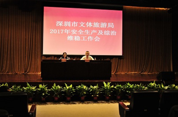 6月19日下午,深圳市文体旅游局2017年安全生产和综治维稳工作会议在市博物馆召开,局机关和下属单位相关负责人员70余人与会。会议总结了今年上半年我市文体旅游领域的安全生产和综治维稳工作,并对下半年工作做出部署。凤春同志在讲话中强调,各部门要继续加大对安全生产、消防、反恐和综治信访工作的重视程度,积极落实各项部署,针对薄弱环节查缺补漏,确保特别防护期不出问题。