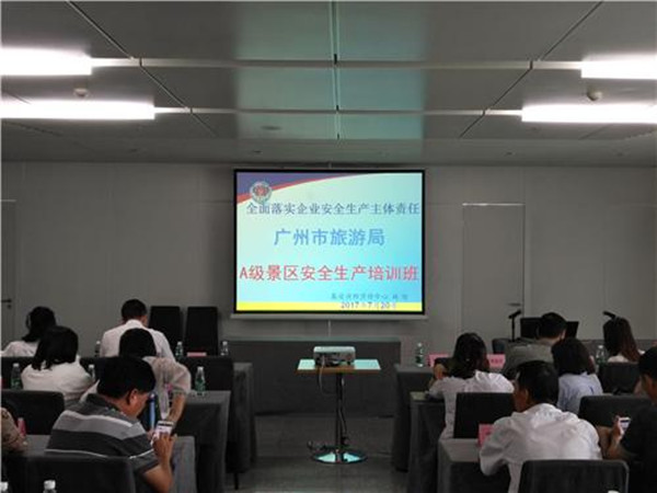 7月20日,广州市旅游局在广州塔举办了2017年度A级景区安全生产培训班,市旅游局徐颖副巡视员出席并讲话。此次培训班是贯彻落实国家旅游局、省旅游局和市委市政府关于旅游安全的工作要求,学习掌握景区安全评估和风险点危险源排查、消防安全、安全生产应急预案制定等专业知识,全面部署“平安景区”创建及A级旅游景区安全评估和风险点危险源普查工作。来自区旅游局、A级景区分管安全生产工作的100余名代表参加了培训。