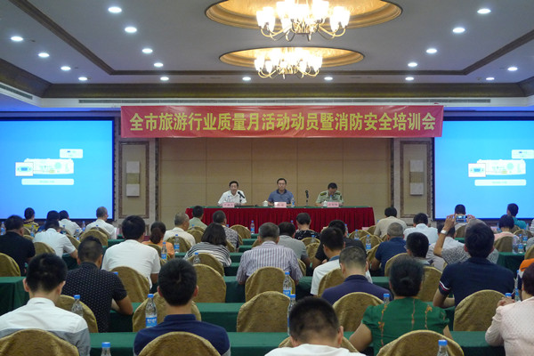 在国庆中秋假期即将到来之际,9月20日上午,汕头市旅游局召开全市旅游行业“质量月”活动动员暨消防安全知识培训会。会议由市旅游局于临生副局长主持,市旅游局陈斌局长出席会议并讲话。市旅游局及市公安消防局领导,各区县旅游局领导,旅行社、星级旅游饭店、A级旅游景区等单位负责人参加了会议。