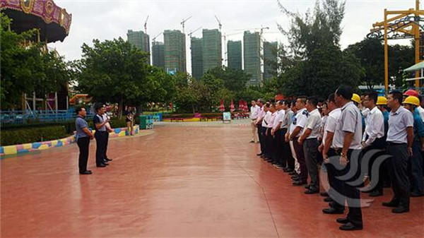 为切实加强旅游安全生产工作,检验有关旅游企业突发事件应急处置能力水平,根据汕头市政府《汕头市2017年度安全生产十大重点项目实施方案》的部署安排,10月13日下午,汕头市旅游局在方特欢乐世界·蓝水星公园(以下简称“蓝水星公园”)突击组织开展大型游乐场所事故“双盲”应急演练。演练由市旅游局陈斌局长主持指挥,副市长林依民同志前往演练现场观摩指导并讲话。副秘书长黄汉文同志,市安委办、市旅游局、市质监局、市卫计局、市公安消防局等单位有关领导参加了演练活动。