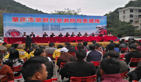 为进一步提升肇庆市旅游消防安全应急处置和提高旅游从业人员的消防应急救援技能,深刻汲取近期北京、天津以及我省佛山市、汕尾市等多地接连发生重大、较大火灾事故的沉痛教训。根据国家、省政府今冬明春火灾防控工作部署和要求,以及肇庆市旅游局有关旅游行业今冬明春火灾防控工作、岁末年初安全生产工作和今冬明春消防安全大排查大整治工作的安排部署。2018年1月5日,肇庆市旅游行业消防应急演练在四会市瀑布奇石景区举行。