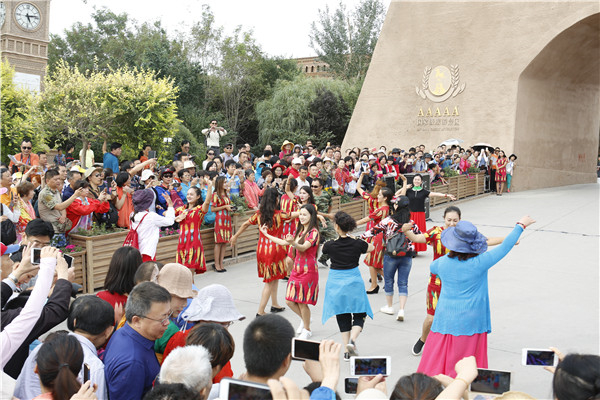 抵达喀什当日,喀什噶尔古城举办了以“感受丝路文化,助力一带一路”为主题的“粤新号”援疆旅游扶贫专列欢迎仪式,在喀什期间,广东游客将参观喀什老城、香妃墓、疏附县新疆民族乐器村、广州新城、巴楚县古唐王城、慕士塔格峰及卡拉库里湖,观看喀什地区歌舞团具有民族特色的精彩演出,同时还会观摩广东援疆部分项目成果。