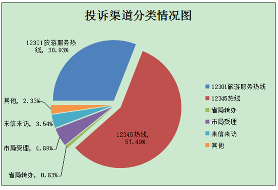 第一季度,全省共接到旅游投诉1329宗,正式受理1031宗,不予受理299宗,已办结900宗,正在办理131宗,结案率为87.38%。其中,通过各地级市12345政府服务热线接受旅游投诉764宗,受理623宗,不予受理141宗,已办结537宗;通过“全国旅游投诉举报与案件办理管理系统”接受旅游投诉411宗,受理278宗,不予受理134宗,已办结240宗,正在办理38宗;省局转办(包括省局政务网及省质监所转办)11宗,受理11宗;市局政务网及局长信箱65宗,受理49宗;受理来信(函)来访投诉47宗,受理40宗,其他部门转办31宗,受理30宗。