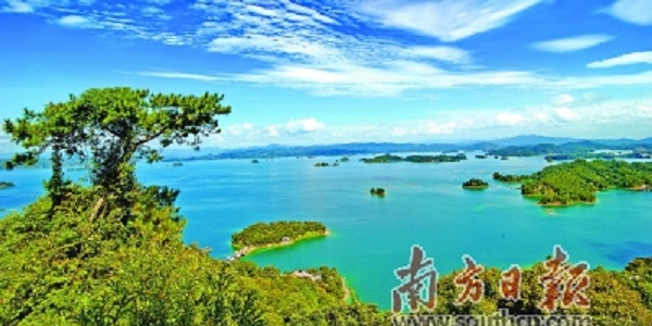 华南地区最大的人工湖、国家4A级旅游景区,首批5个“中国好水”水源地之一,因“四季皆绿,处处皆绿”而得名。湖区总面积1600平方公里,水域面积达370平方公里,水质常年达到国家地表水Ⅰ类水标准。